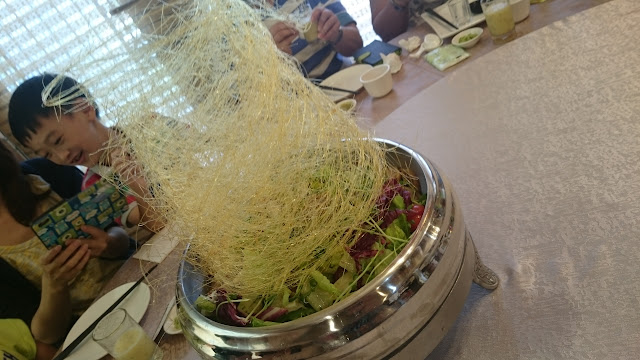▲這個豪華的菜是甚麼?還有糖絲鳥窩,原來這是生菜沙拉,可是這要如何下手,