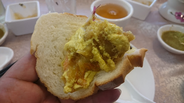 ▲咖哩蝦姑需要搭配麵包一起吃,這樣會吃到蝦姑的香酥跟咖哩的濃郁香味,