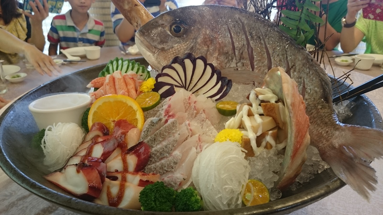 ▲第一道冷盤氣派登場,連魚一起上桌,生魚片就是那隻魚,切出半邊魚身,肉質很Q彈有嚼感,咀嚼有肉的甜味沒有魚腥味真的很新鮮,冷盤還有鮑魚、章魚鬚、蟹腳。