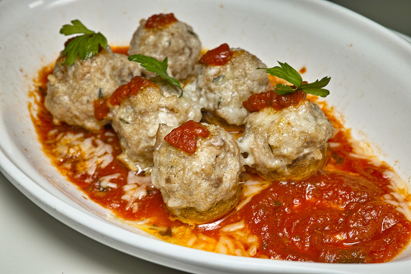很好吃的一道菜, 蕃茄醬汁與乾酪搭配不錯, 豬肉部份剛開始會以為它只是一個丸子, 但其實底下鑲了蘑菇