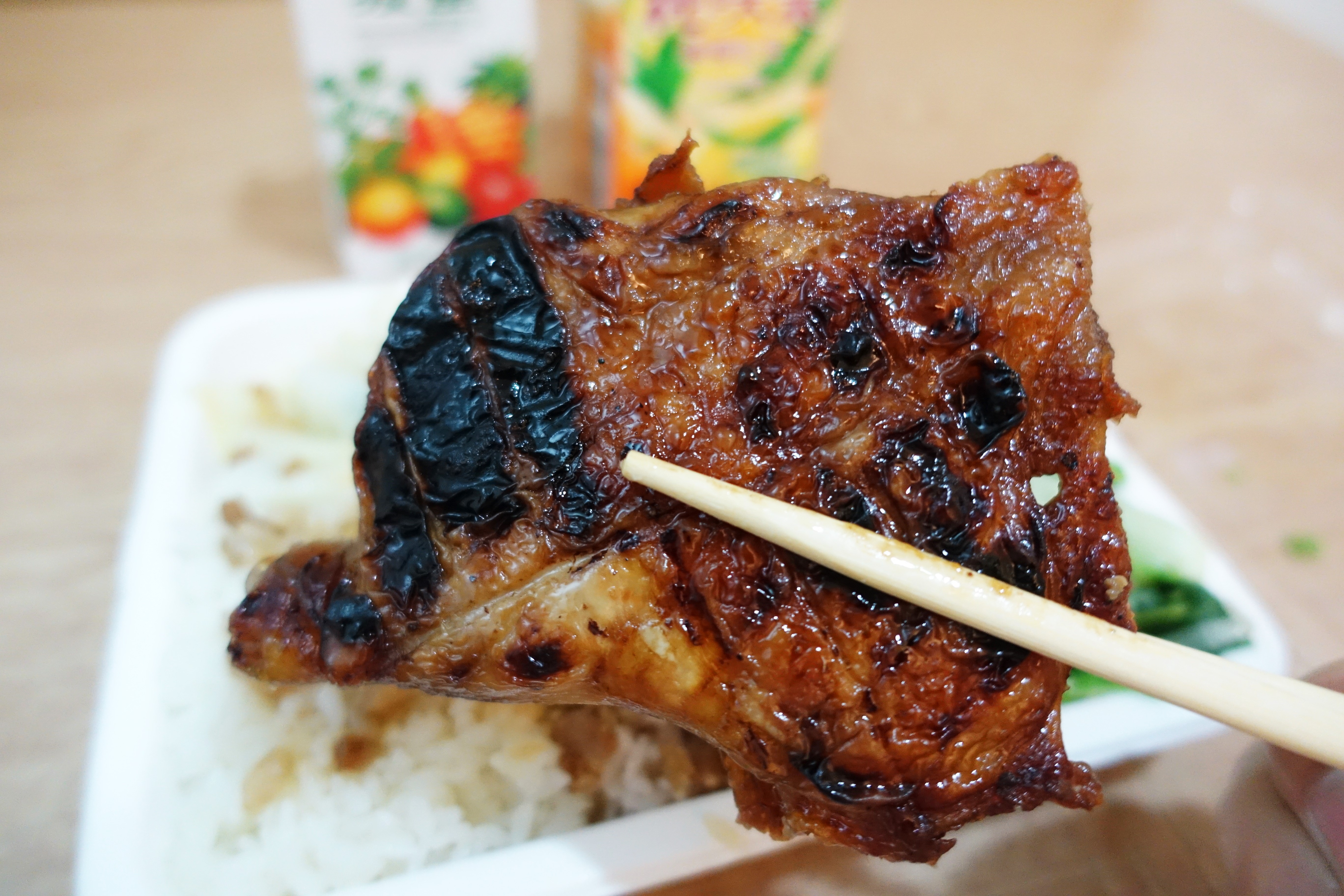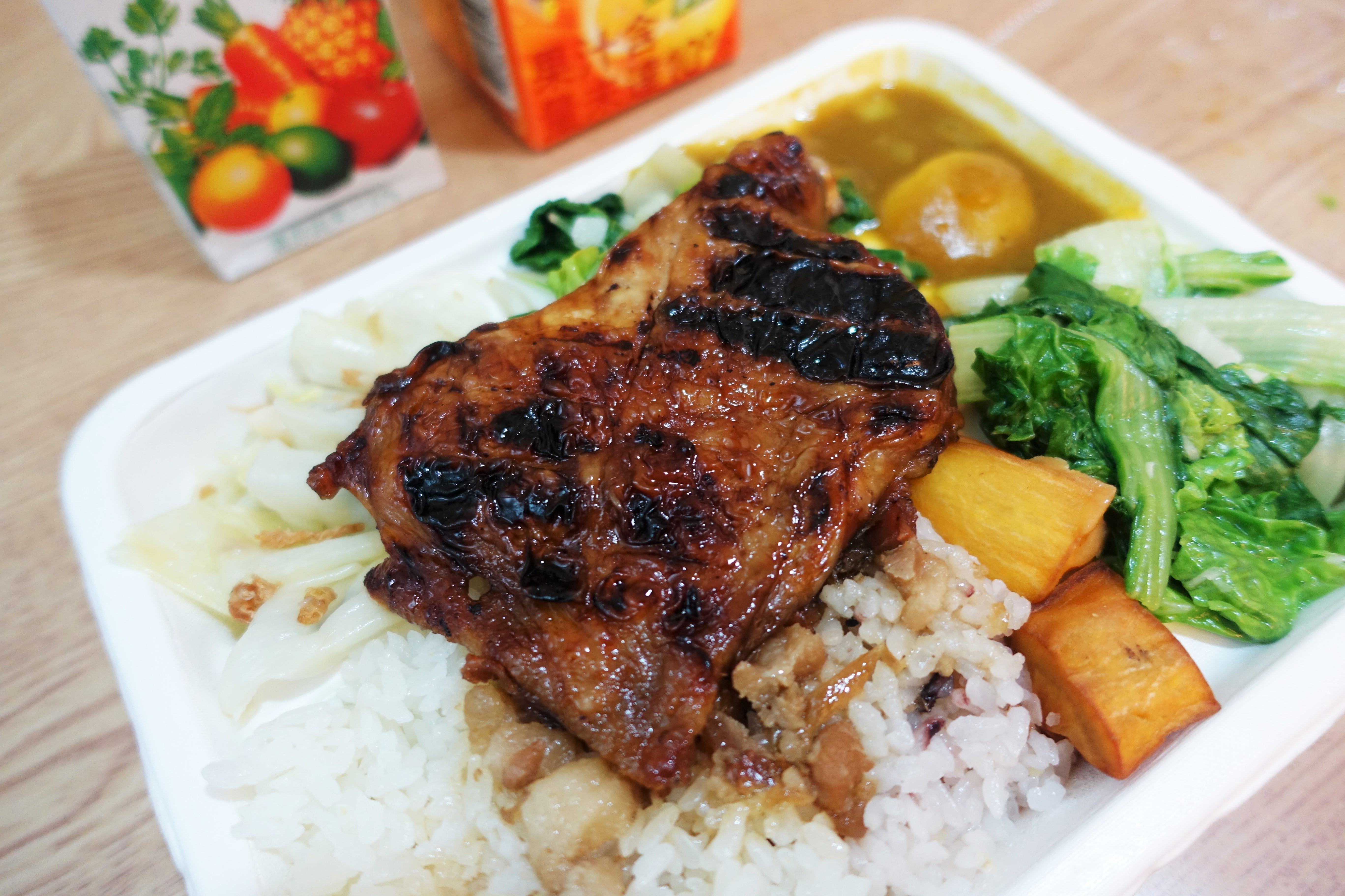 雞腿經過照燒處理後,一口咬下可以吃到淡淡的醬油味與甜味,沒有調味過重的問題。