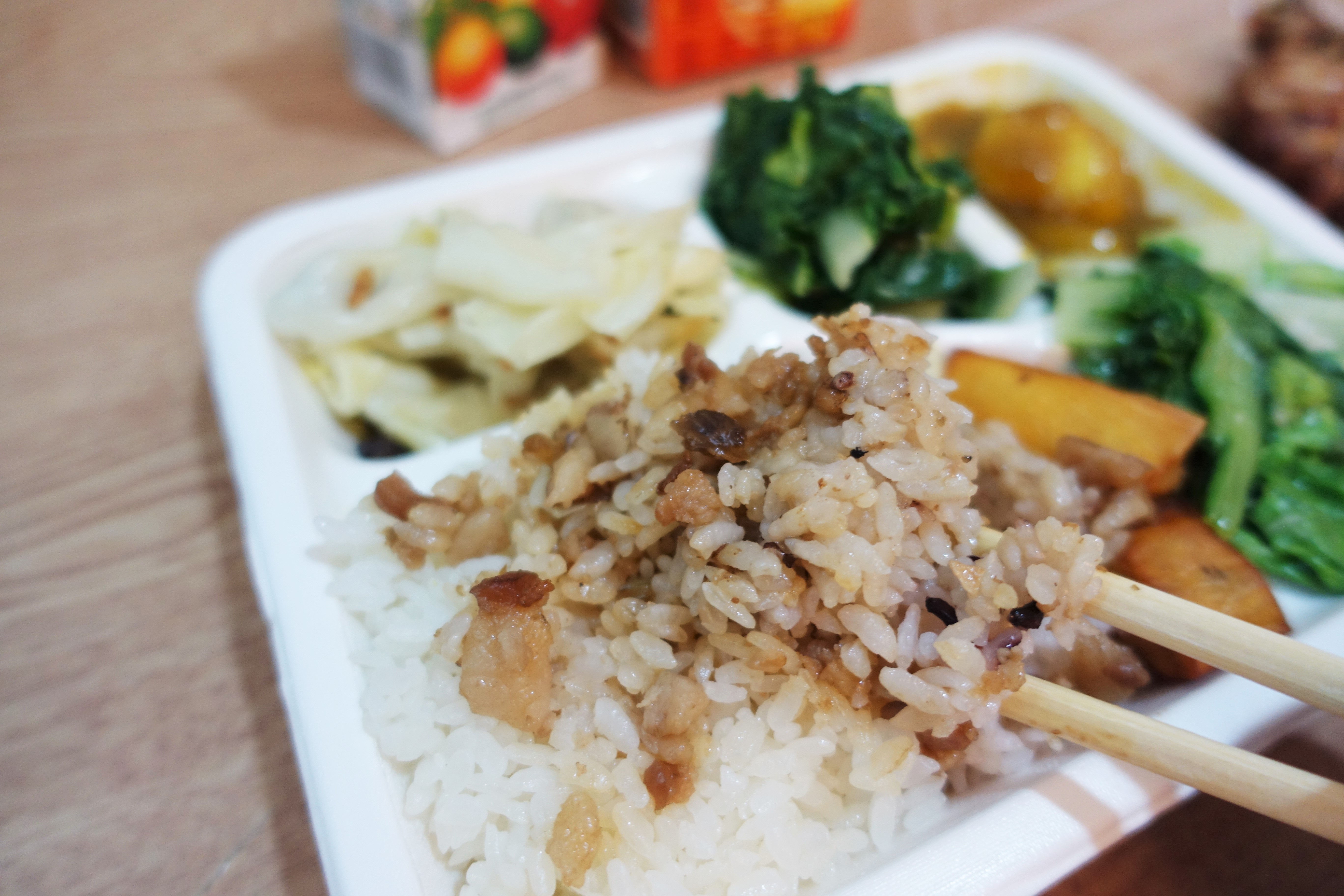 餐點口味:五分埔食堂採用100%池上米,可以吃到香、Q、甜三種層次,配菜沒有過多的調味料,而是加入其他食材一起炒,有感受到店家以少油少鹽的健康理念去處理食材。