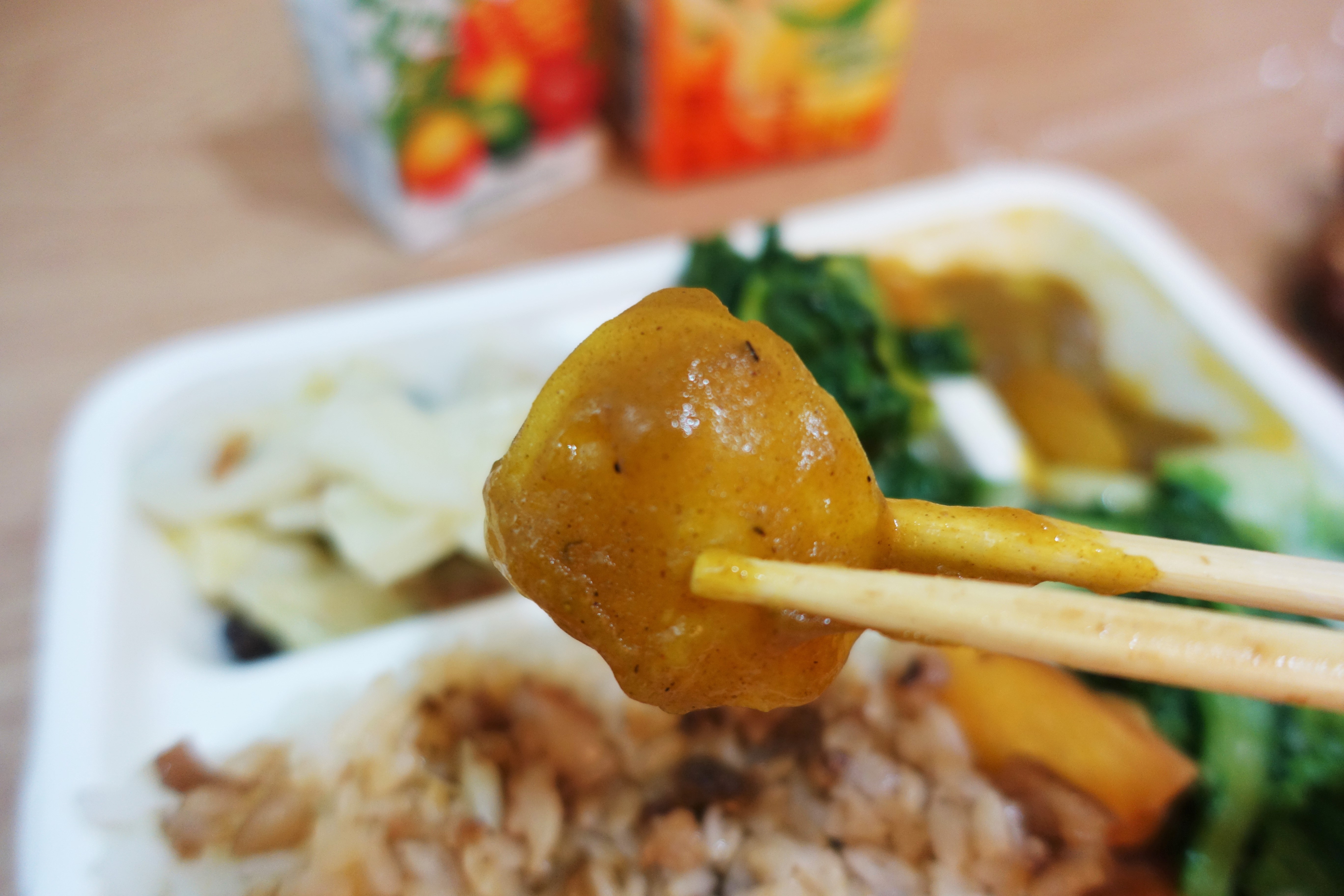 一般便當店的米通常會比較硬,而且聞起來沒什麼味道,池上米聞起來確實有散發出一股米香,哥特地挑選沒有肉燥的部份吃,米的Q度較高且咀嚼後會有一股甜味跑出來。大家改天如果有機會吃到池上米,可以仔細品嘗一下,真的有所差異阿。