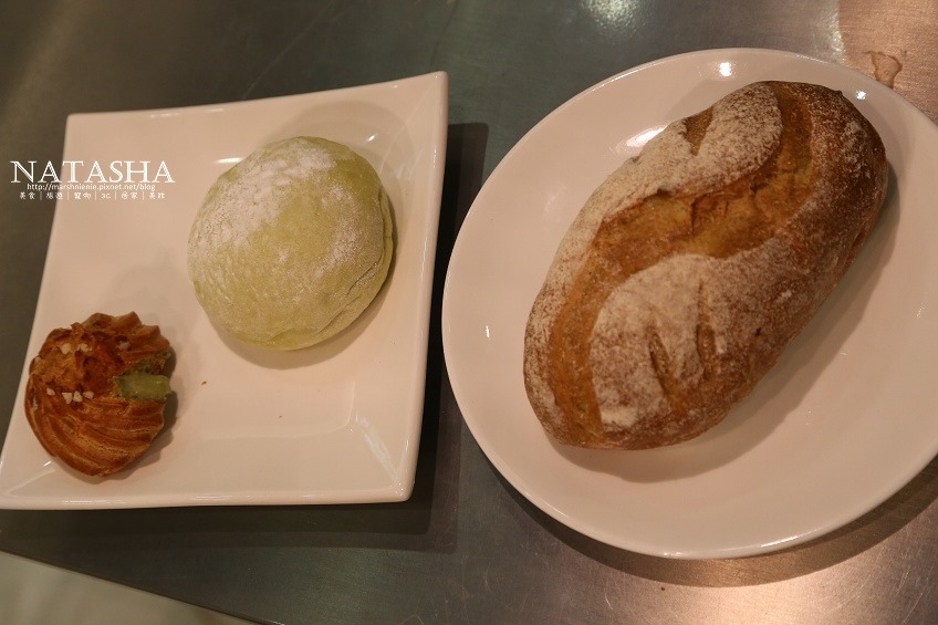 外皮有些厚度且較硬,裡面較為蓬鬆但又沒有綠茶雪人來的軟,所以整體上還是比較偏向歐式麵包的口感,