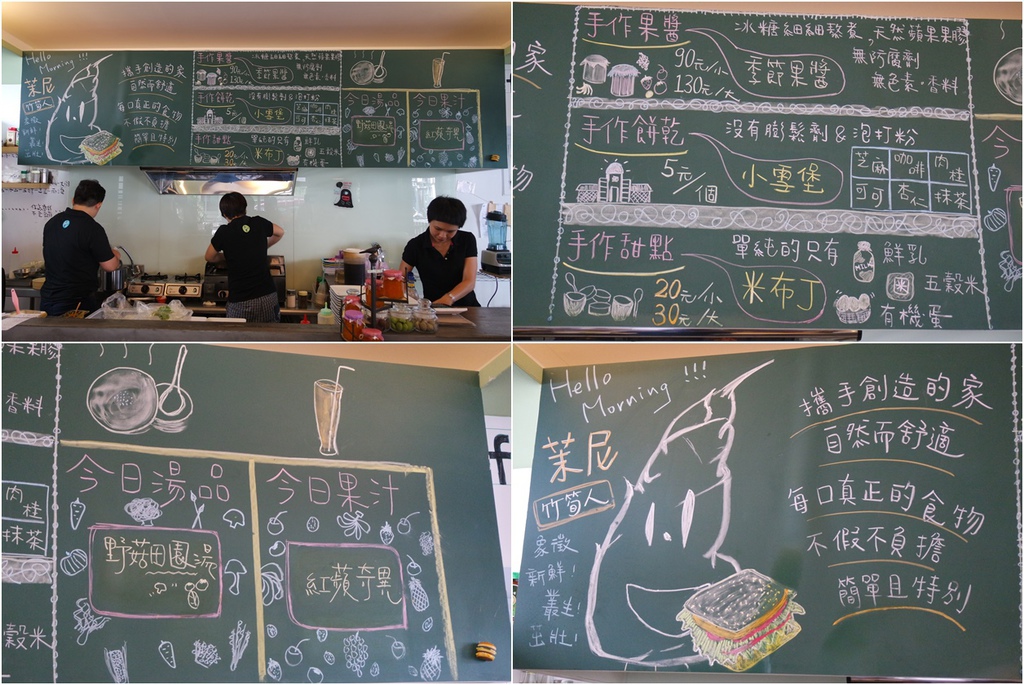 工作區後方的大黑板上也有貼心寫上今天供應的湯品及果汁口味