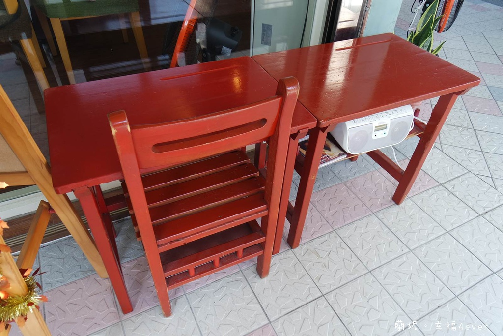店門口還放了兩張課桌椅,應該是裝飾用的吧?