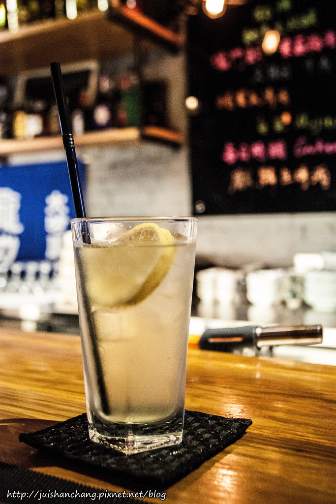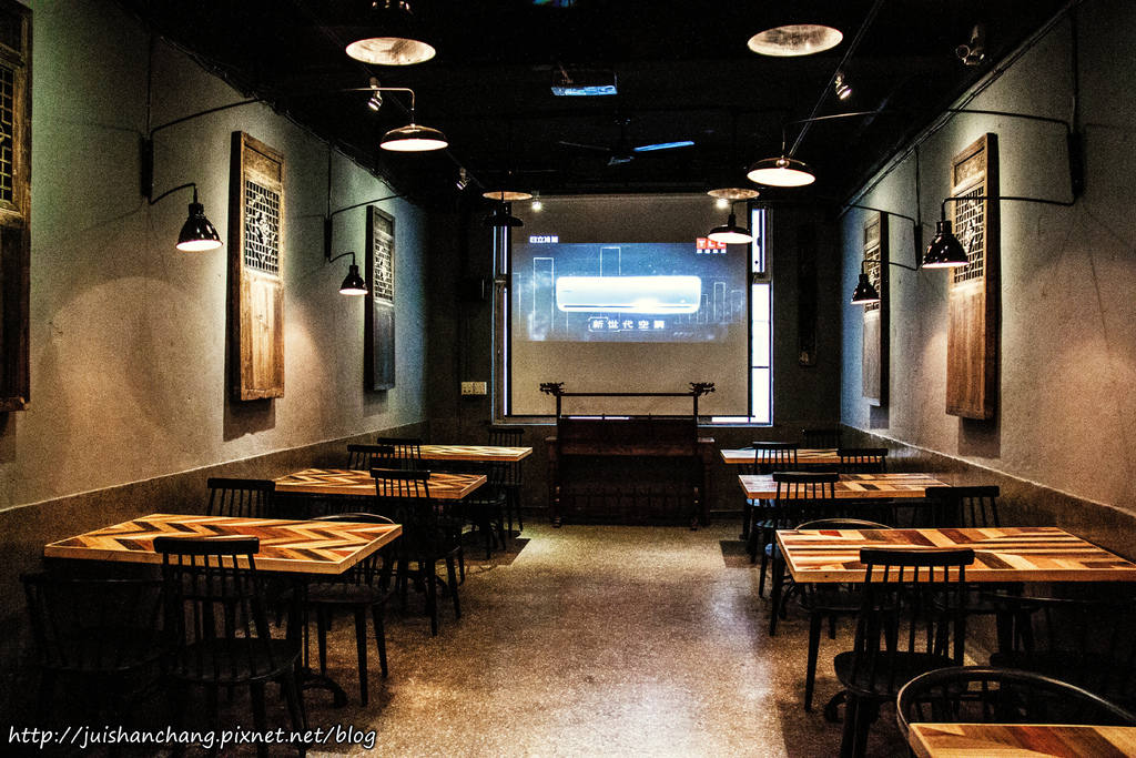 一樓為日式開放式吧檯以及磚塊的展牆所結合而成的用餐空間,放了酒瓶鐵架、英式大時鐘點綴出濃烈復古風,很強烈的混搭風~