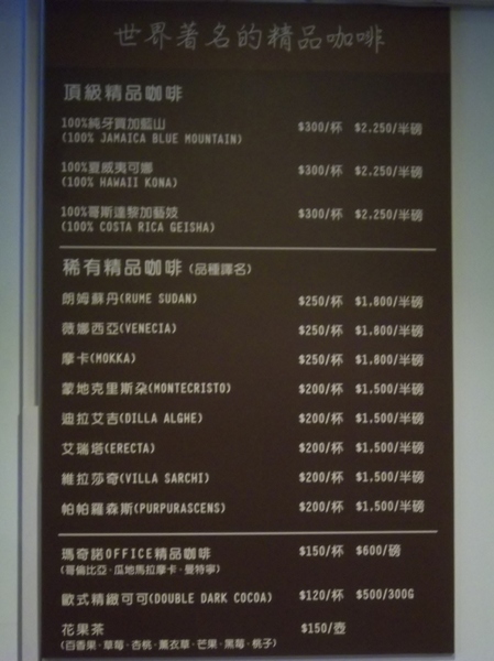 外表,沒有過多的裝潢與點綴,但100%純牙買加藍山咖啡深深吸引了我,所以我決定一探究竟。