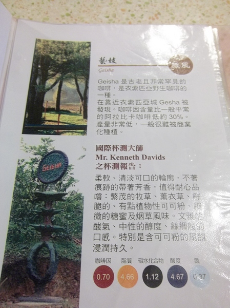 喝完藍山,身為愛喝酸的我,決定喝第二杯咖啡---藝妓,藝妓以其獨特的花果香風味聞名,所以其酸味會比藍山更酸。