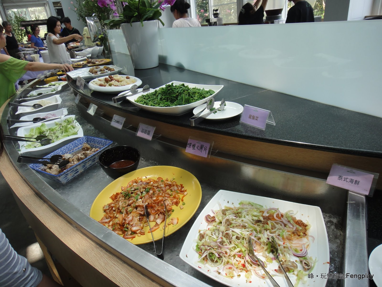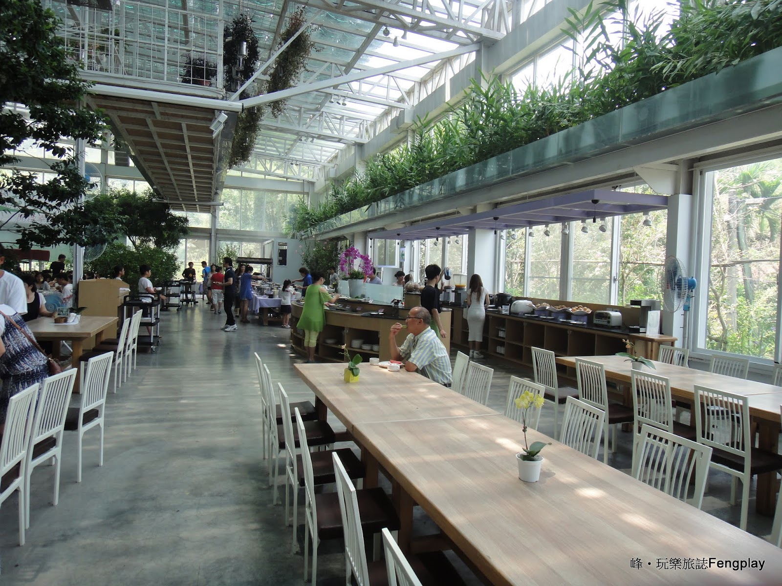 ▲接下來就是今天午餐的重點,香草菲菲的buffet自助式用餐區,區域很大花圃周邊還有設座位會,桌面也用得很乾淨,沒有牆面全部都是透明的猶如在玻璃花園裡用餐。