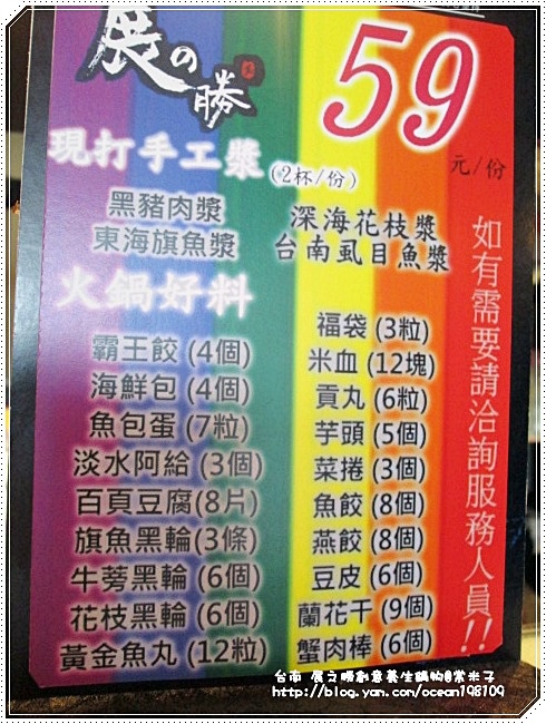 一份套餐裡除了可選一項鍋物(肉品)外,