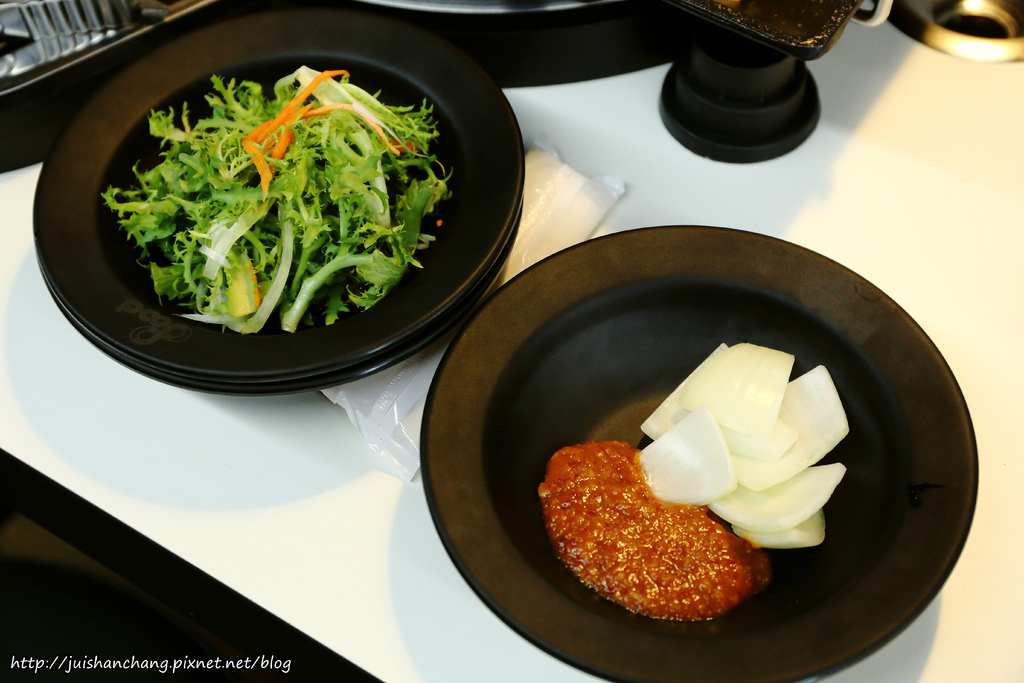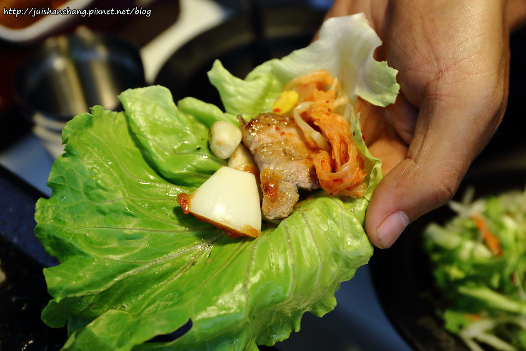 吃韓式烤肉,當然要包泡菜、洋蔥跟烤肉一起吃,這樣子口感會很清爽喔!