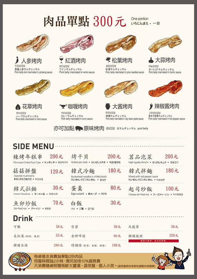 4. 用餐時間2小時,每桌基本消費為單點兩份肉品。