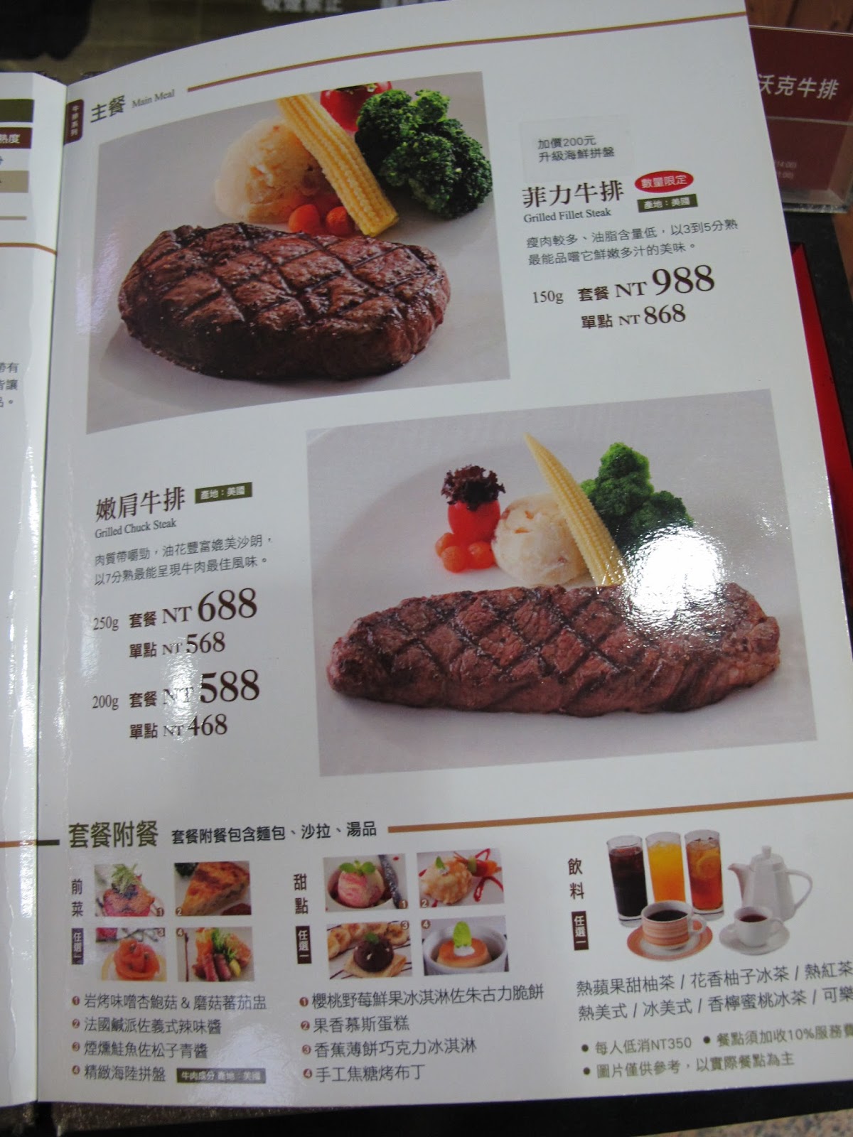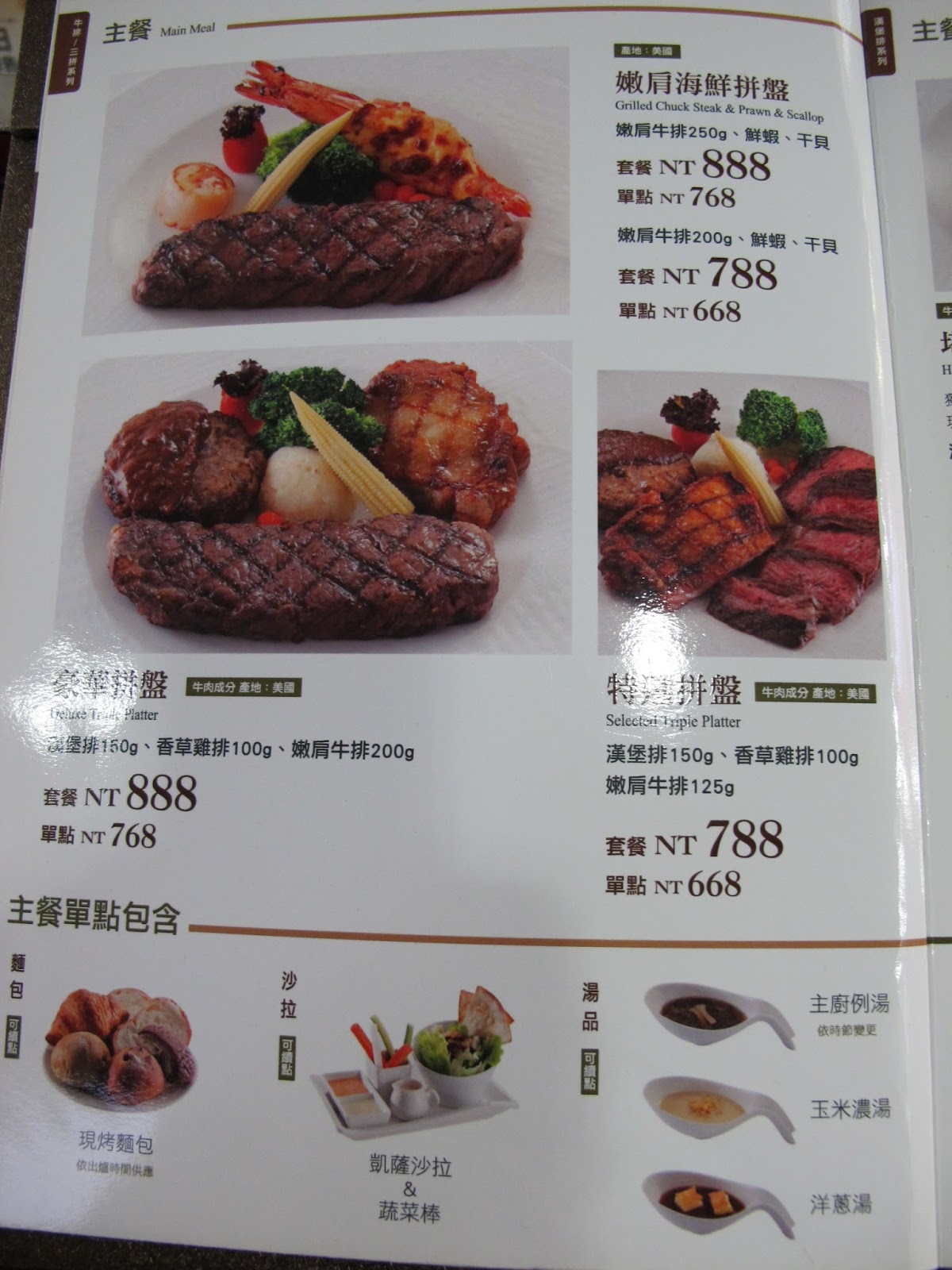 這次來想要專注享受這份牛排,先試試單點的菜色內容!