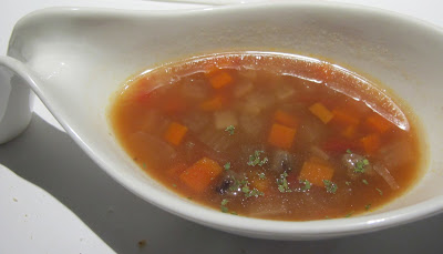 相較於洋蔥湯,牛肉蔬菜湯就是番茄帶酸的口感,這碗湯還能吃得到牛肉小丁,番茄的滋味香濃,洋蔥與紅蘿蔔丁切得小,每一勺都能喝到充滿蔬菜的湯,蠻豐富的。
