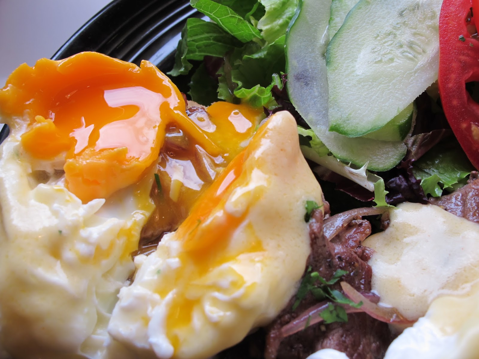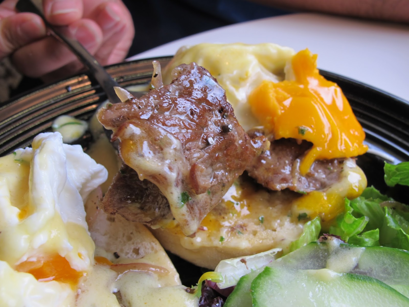 班尼迪克蛋煮得剛剛好,一切開來黃色的蛋汁流開來,好可口的樣子!雞蛋下面墊著菠菜與朝鮮薊,在台灣少見的朝鮮薊,層層的柔軟層次口感,讓我吃得好滿足!