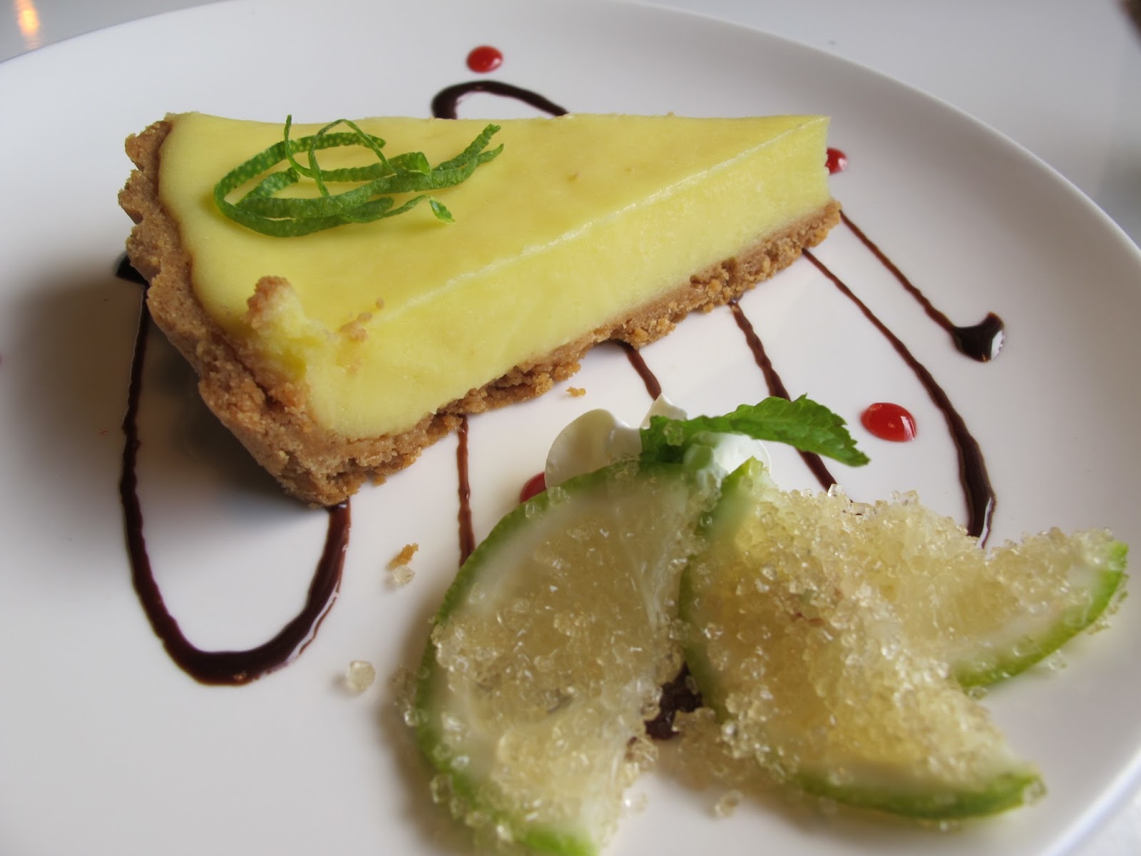 蒙頓香檸塔吃起來甜甜的,附著三片新鮮檸檬漬糖片,反而比較吸引我,酸酸的檸檬與甜脆的糖粒,平衡出一種刺激的酸甜好滋味!三片很快被我們掃空!