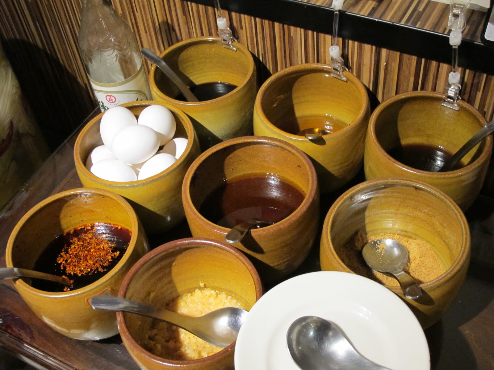 醬料也準備得齊全,沙茶醬、辣椒、醬油、花生粉等可依自己口味喜好調配,也備有生雞蛋及青蔥等。