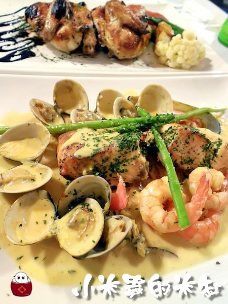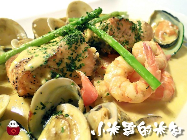 | 主餐 | 香煎鮭魚佐時令海鮮佐西班牙番紅花醬汁 | 任選2 (不得重複) |