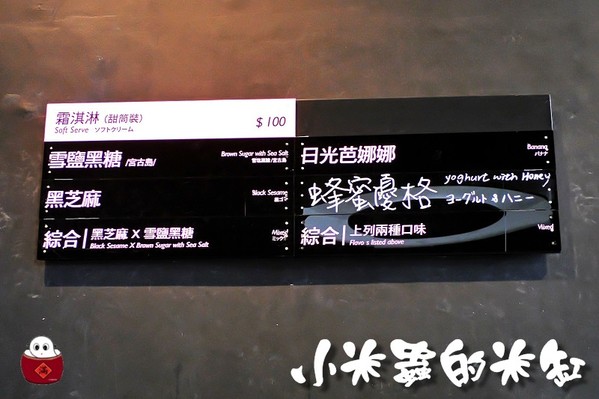 當天的霜淇淋口味有雪鹽黑糖、芝麻、日光芭娜娜、蜂蜜優格4款