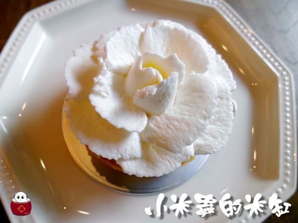 看看上面用奶油擠成美麗又高雅的山茶花造型,就讓我心花朵朵開~~