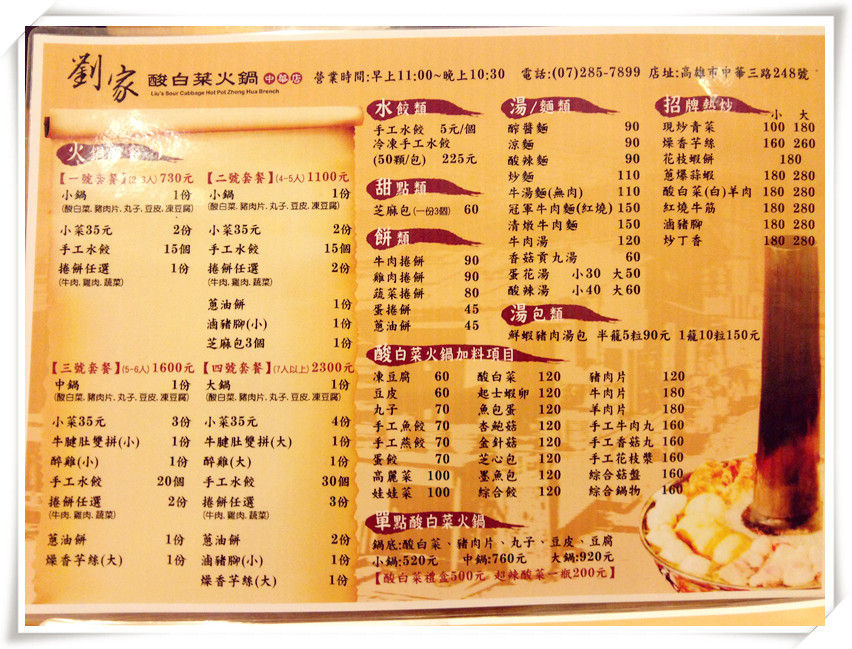今天娃娃跟前同事一起聚餐,原本要訂那左營眷村大名鼎鼎的劉家酸菜白肉鍋,因為太遠被打槍所以改到中華路上的劉家