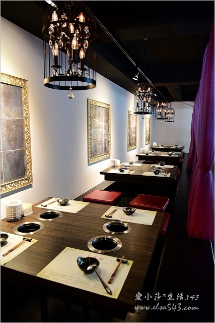 入內後第一眼就覺得這場景好像高級鐵板燒喔!有炫麗的燈飾、舒適座椅、宮庭式的半包廂等等裝潢,真看不出是間火鍋店啊!