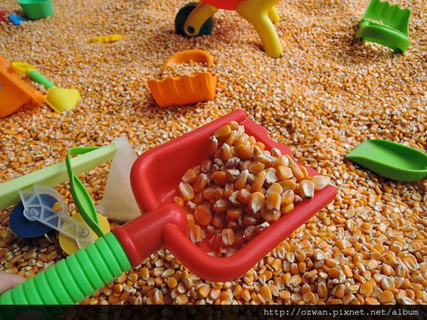 不沾身、不髒手的玉米坑,小朋友玩的時候太過興奮很容易會灑到外頭,
