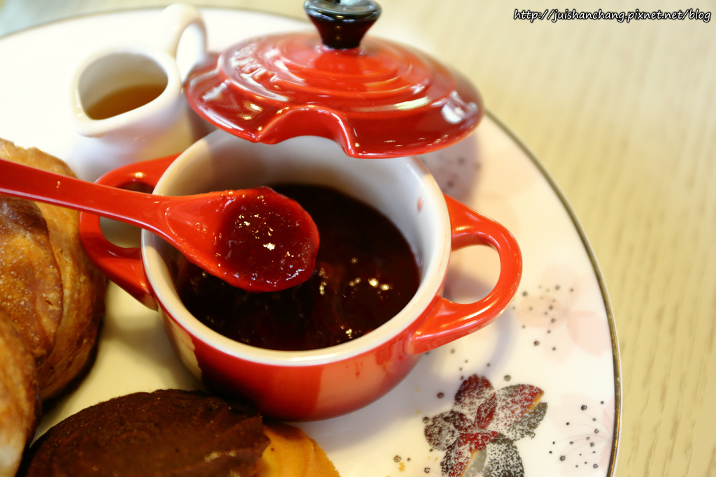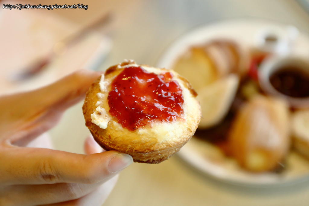 淋在上面的草莓醬是老闆自製的,果醬微酸微甜的搭配司康吃真是絕配