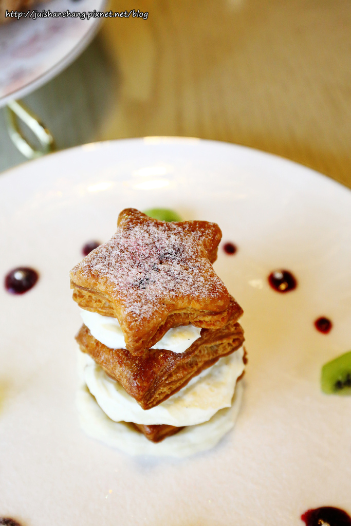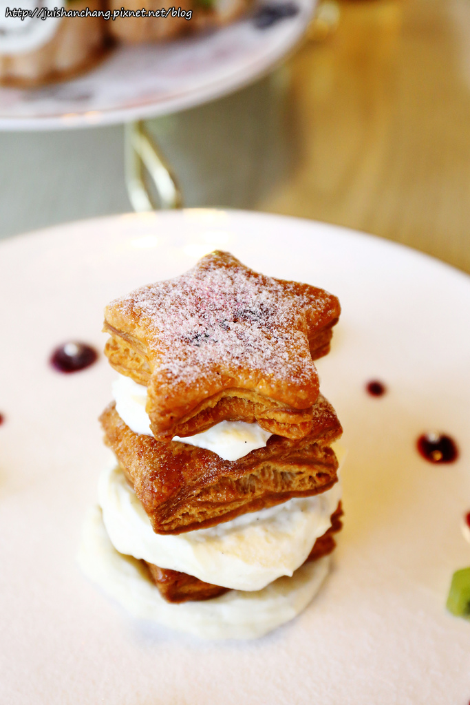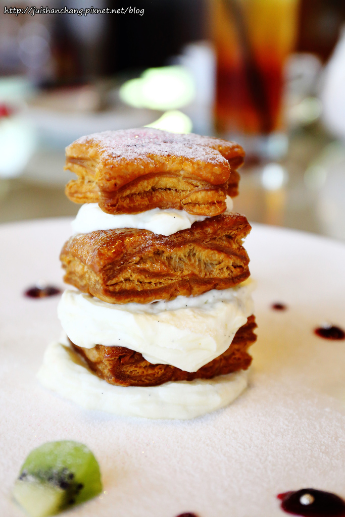 酥鬆的千層派皮口感,搭配上香草卡士達醬,充滿奶香並帶著些許香草的芬芳,讓人吃多也不膩口