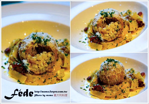 F'ede的創意私房菜造型真的很特別…視覺上開了就好開心…前陣子在台中工作結束後就跟朋友一起約吃了晚餐…對吃飯沒什麼意見的我就交給朋友來決定要吃的餐廳…so~最後我們就來到了位於西屯區的「F'ede義大利料理」…而許久沒吃義大利麵的我當然是完全沒意見的~(其實吃什麼我也都好就是了XD)…就這樣車停妥後我們就進餐廳準備用餐囉…其實當天我們用餐時間大約是下午5點多的時候…當時的天色還算頗亮…but我一直到吃飽飯後出來才想起剛剛沒拍到店門口…雖說天亮時拍會比較明亮,不過晚上看起來也別有一翻氣氛呀XDD…一樓設有吧台區…但客人用餐多半都是在2樓…所以我們進店裡後就直接往樓上走去了…F'ede整體給人很溫暖的感覺…吃飽飯後還可以看個雜誌休息一會…就算一個人來用餐也非常適合滴…F'ede的桌數不多,所以空間很寬敞讓人感到很舒適…每次到台北用餐時我都會覺得台中跟高雄真的很好…因為吃飯就是要放鬆心情好好享受的…對於狹小的用餐空間真的是會讓人很火大又吃的很不舒服…這時候就有種生為台中人真好的港覺XDDD…桌上的餐具都擺放的相當整齊…光視覺就讓人感覺心情很好…好~~~室內環境都看完後接著就要回到下午時的用餐時刻囉XDDD…在還沒開始看菜色前要先好好介紹一下F'ede這個名稱…「F'ede」是源自於義大利文「信任」的意思…為的就是希望提供一個安全、舒適、又被信任的用餐環境…不論是在食材和衛生上都很用心的把關…由此可知老闆真的是用非常認真的態度在經營這間義大利麵館…好久沒喝汽泡水的忽然對氣泡水很懷念…所以今天就來這裡好好的給它喝了幾杯…這隻在義大利銷售第一的法拉蕊原生態氣泡礦泉水非常順口…已經擁有115年的歷史,同時也是歐洲貴族非常喜歡的品牌…所以對於一向不是這麼喜歡氣泡礦泉水的我來說「法拉蕊」我是很ok的…在享受氣泡水的同時再搭配餐前麵包一同享用簡直就是完美…若每天的生活都能這麼享受又悠閒真不知該有多好呀~(遠目中)…餐前麵包一向都是我很重要的菜…不過當天我有比較克制一點…因為重點是要放在主餐咩…接下來是湯品的部分…不過湯品就跟一般喝到的大眾口味差不多…but我也是很捧場的火速就喝光它了XD…而關於前菜的部分我一整個就多莉上身了(詳情請見海底總動員XD)…不知道為啥就連