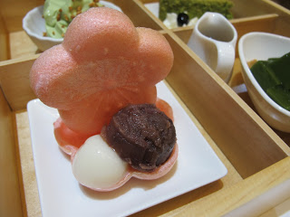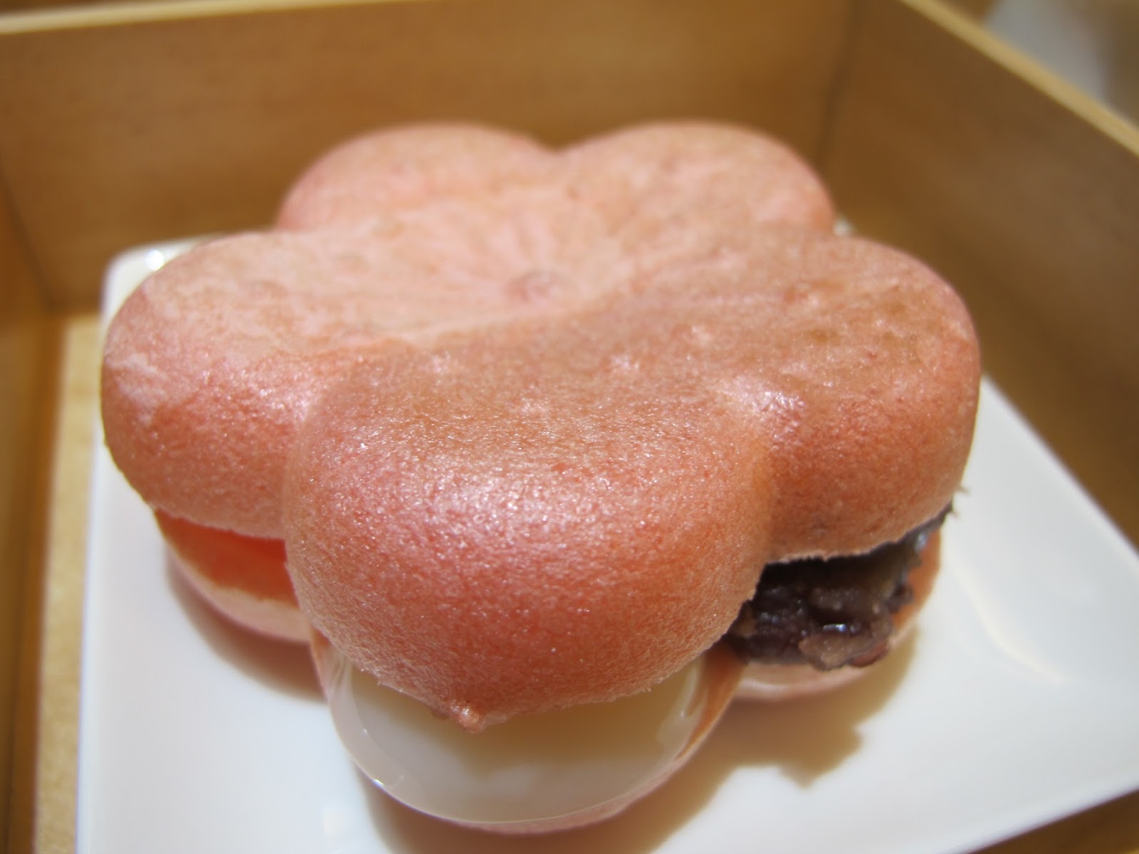 白玉紅豆最中餅的櫻花色很漂亮,吃的時候把餅殼合起來,又甜又Q的紅豆白玉內餡與酥脆的餅皮,口感層次多元。