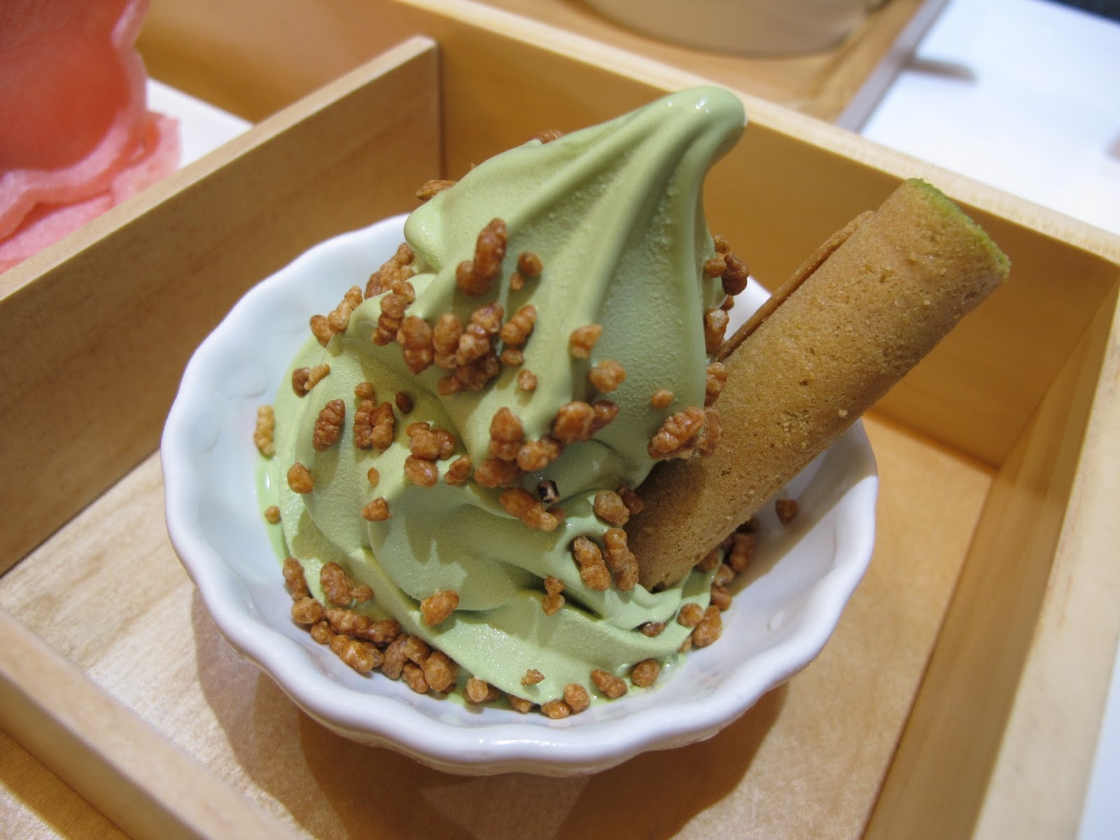 抹茶霜淇淋上面灑著玄米粒,吃起來有脆脆的口感。