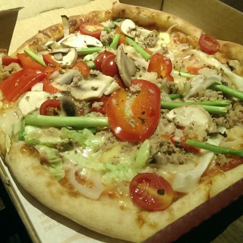 某天下班,無意間在中山附近亂晃,發現巷弄中一家知名的披薩連鎖店!