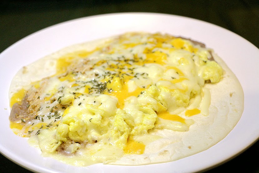 使用墨西哥餅皮 加入豆泥起司炒蛋 牛肉