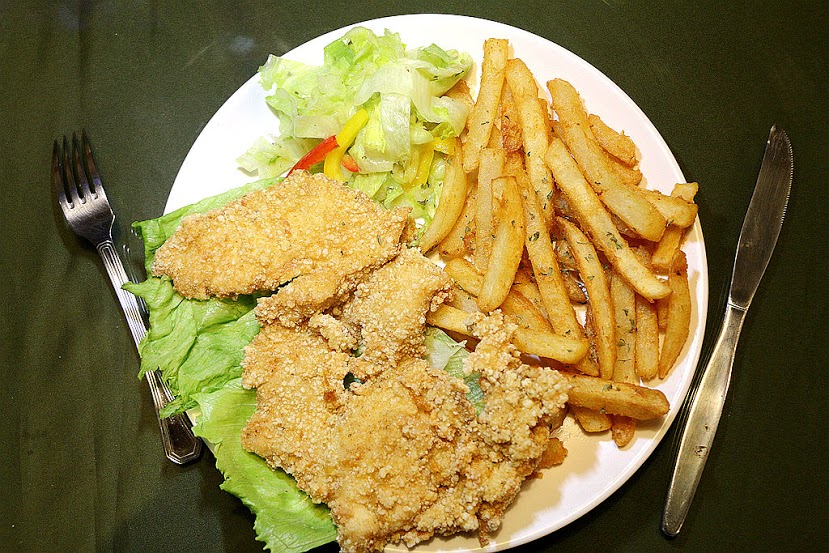 雞排肉質酥脆 與一旁沙拉做搭配巧妙的中和了油膩感