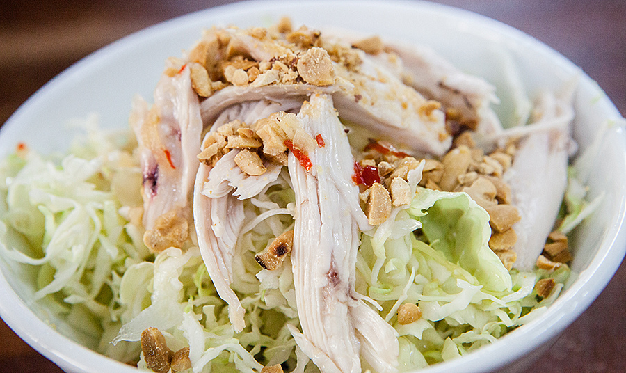 涼拌過的雞肉絲加上花生仁以及高麗菜絲