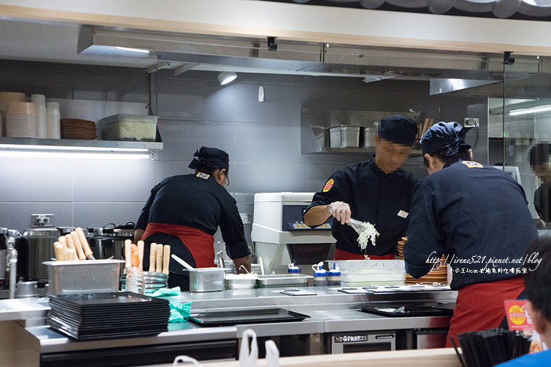座位不少,裝潢跟日本的連鎖店風格一樣,開放式的廚房讓顧客一目瞭然。