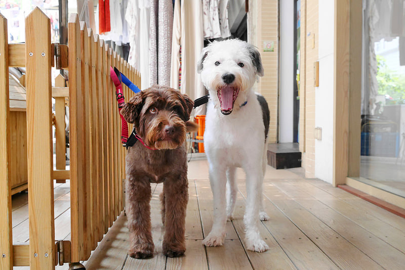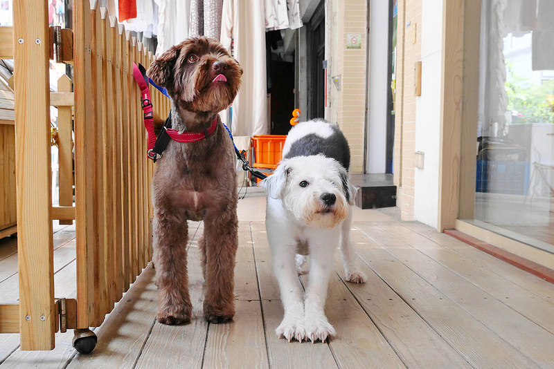(照片裡是新養的店狗白色叫CHEW CHEW 棕色是MOMO..都是很乖巧的狗兒)