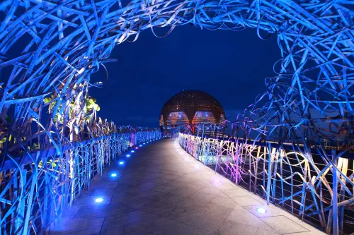 要進入時步道兩旁有LED燈照射著藤蔓