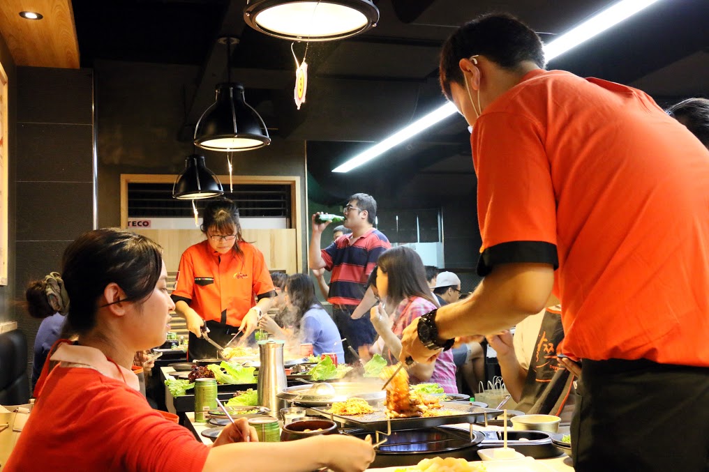 店員會幫忙把烤肉疊旁邊避免過熟!