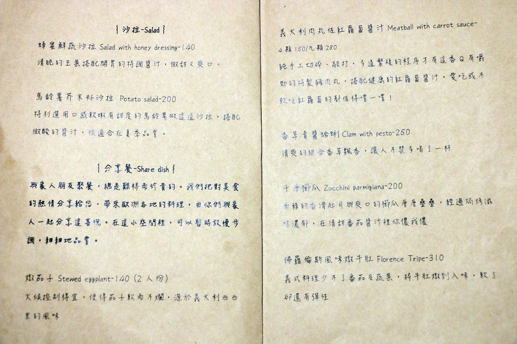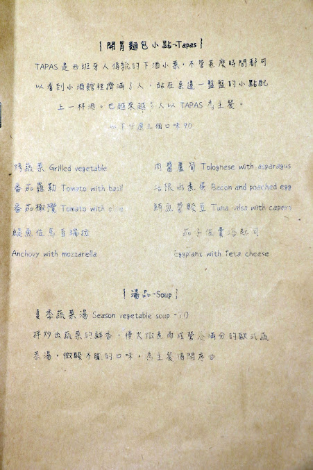 有開胃麵包小點TAPAS、湯品、沙拉、分享餐、義大利麵、燉飯等
