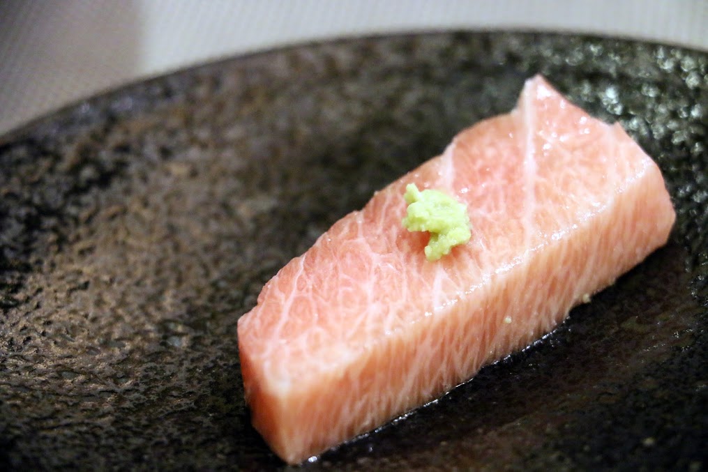 吃生魚片的順序為AKAMI(背脊)→CHIU-TORO(中腹)→O-TORO(大腹)