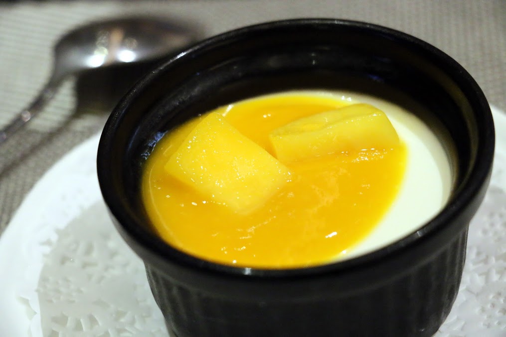 甜點是芒果奶酪,淋上芒果醬還有新鮮芒果塊