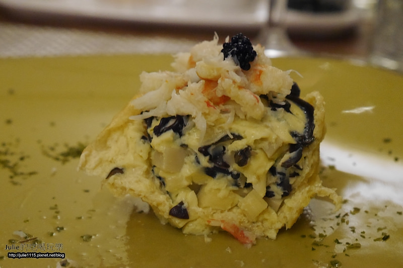 上方在灑上松葉蟹跟魚子醬?
