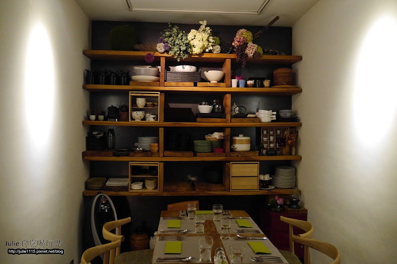 ↑牆面上其實沒有過多的裝飾,就只是擺上餐具,跟一些花朵。
