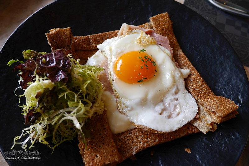 ↑火腿起司太陽蛋鹹薄餅,$330