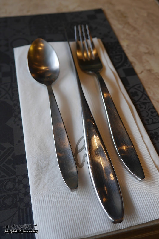 ↑簡單中又帶點特別的餐具,有發現嗎?中間的刀子是可以立起來的。
