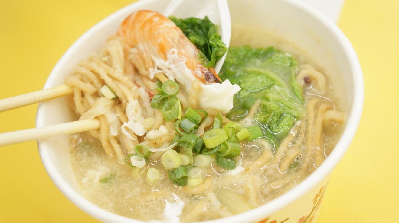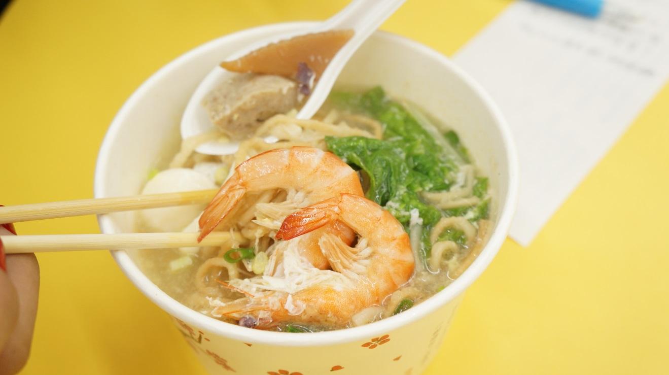 麵條煮的恰到好處,就算外帶(10分鐘的路程)也不會糊在一起,吃起來還是口感十足。蝦子、