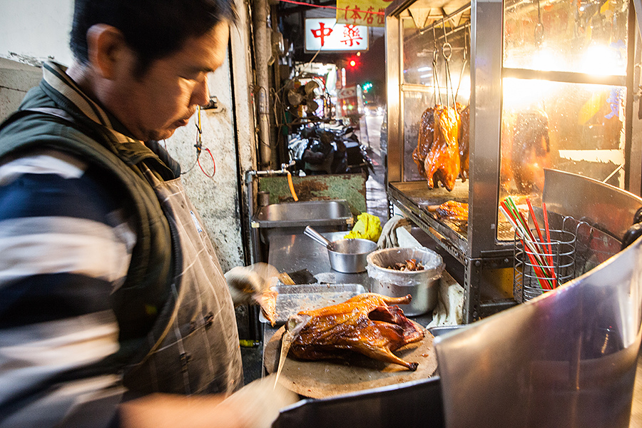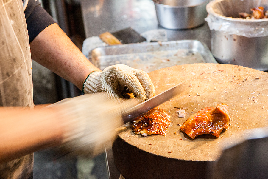 跟老闆點好之,老闆就會從櫥窗抓一隻來現場片下鴨肉